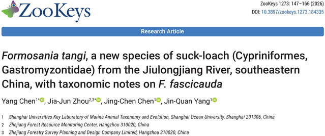 肚子吸着水底,但并不是泥鳅。目田日报·上不雅新闻记者2日从上海海洋大学获悉,海大与浙江省丛林资源监测中心等单元近日在海外学术期刊《ZooKeys》聚首发表盘问效劳,适应将福建九龙江流域发现的腹吸鳅科鱼类成立为新物种——文乔缨口鳅(Formosania tangi sp. nov.)。