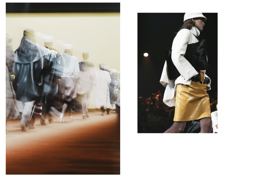 皮革裹带着期间的将强,游走于衣摆的经纬之间;皮草晕染阔绰的诗意,温度与气场在肌理间寻得神秘均衡。瑕瑜灰铺陈极简底色,而黄、红、棕、紫如灵感碎屑跃动其上,划破千里静,燃烧矛头。