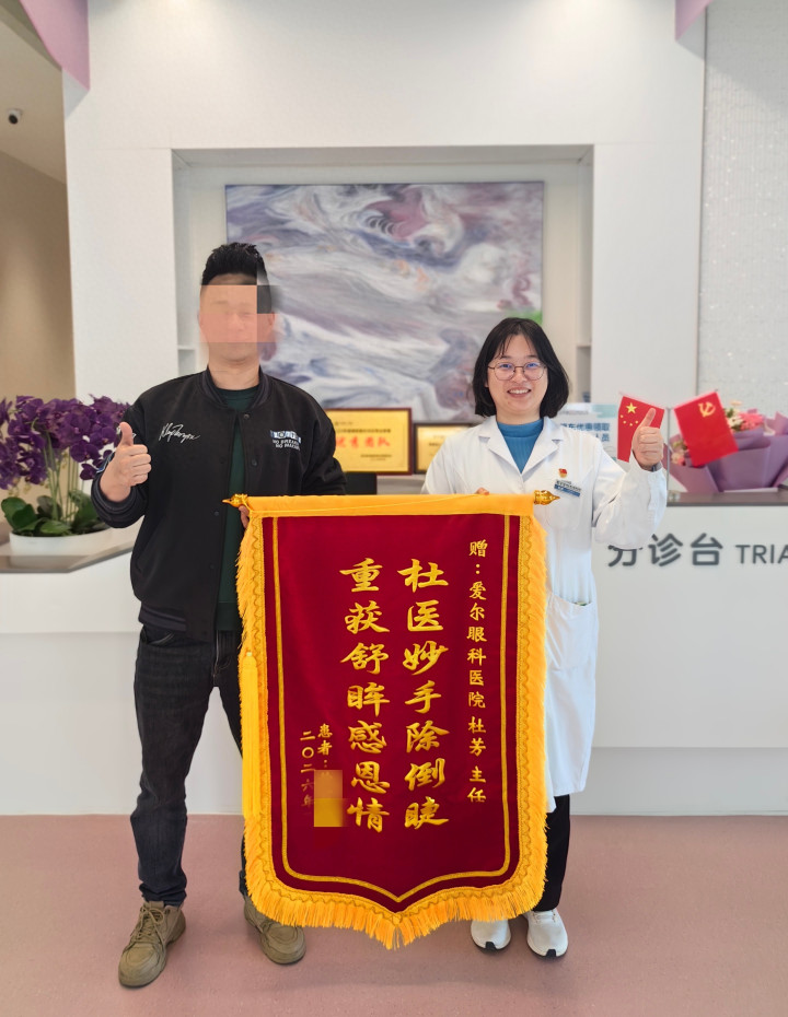 经过三个月的复原,于先生眼部不适绝抵湮灭,模糊、酸涩的视觉感受被默契、赋闲的视界取代,生存质料取得权臣进步。复查今日,他稀奇定制锦旗,向杜芳副主任医师抒发最诚笃的感恩。