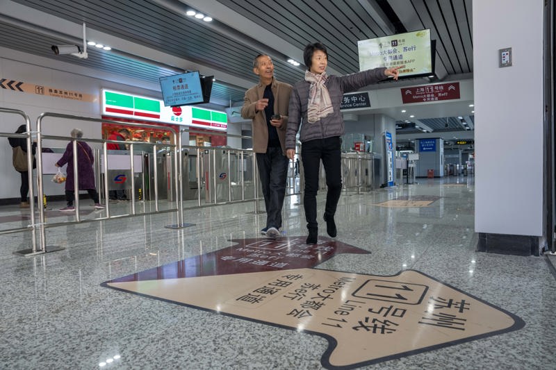 上海乘客在花桥站换乘苏州11号线。 孟雨涵 摄