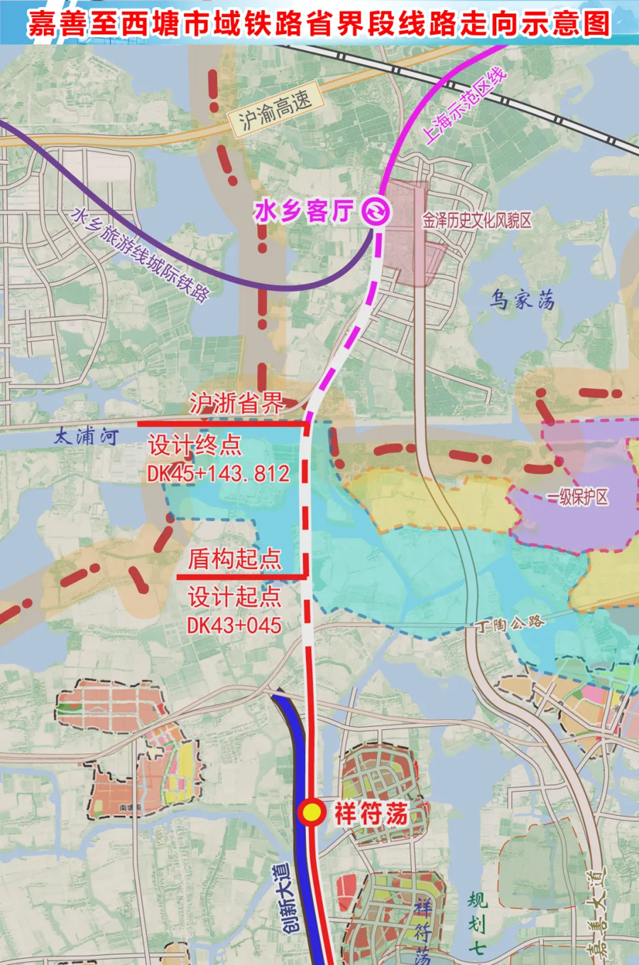 嘉善至西塘市域铁路省界段透露走向深远图